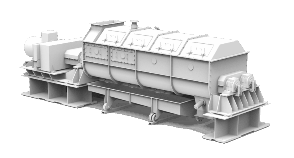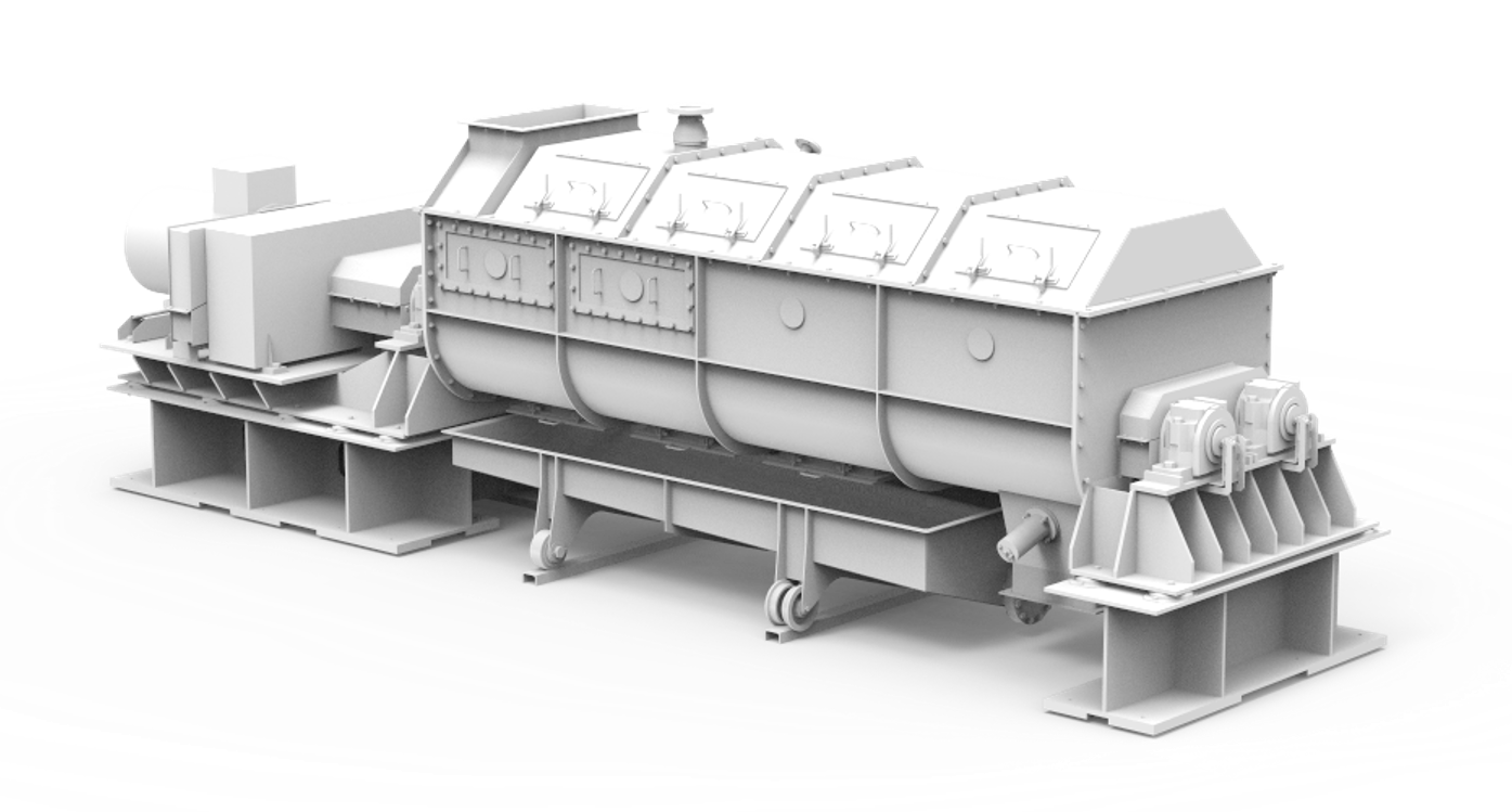 Double shaft paddle granulator consists of 2 shaft paddles, rotating in opposite directions in a static trough.